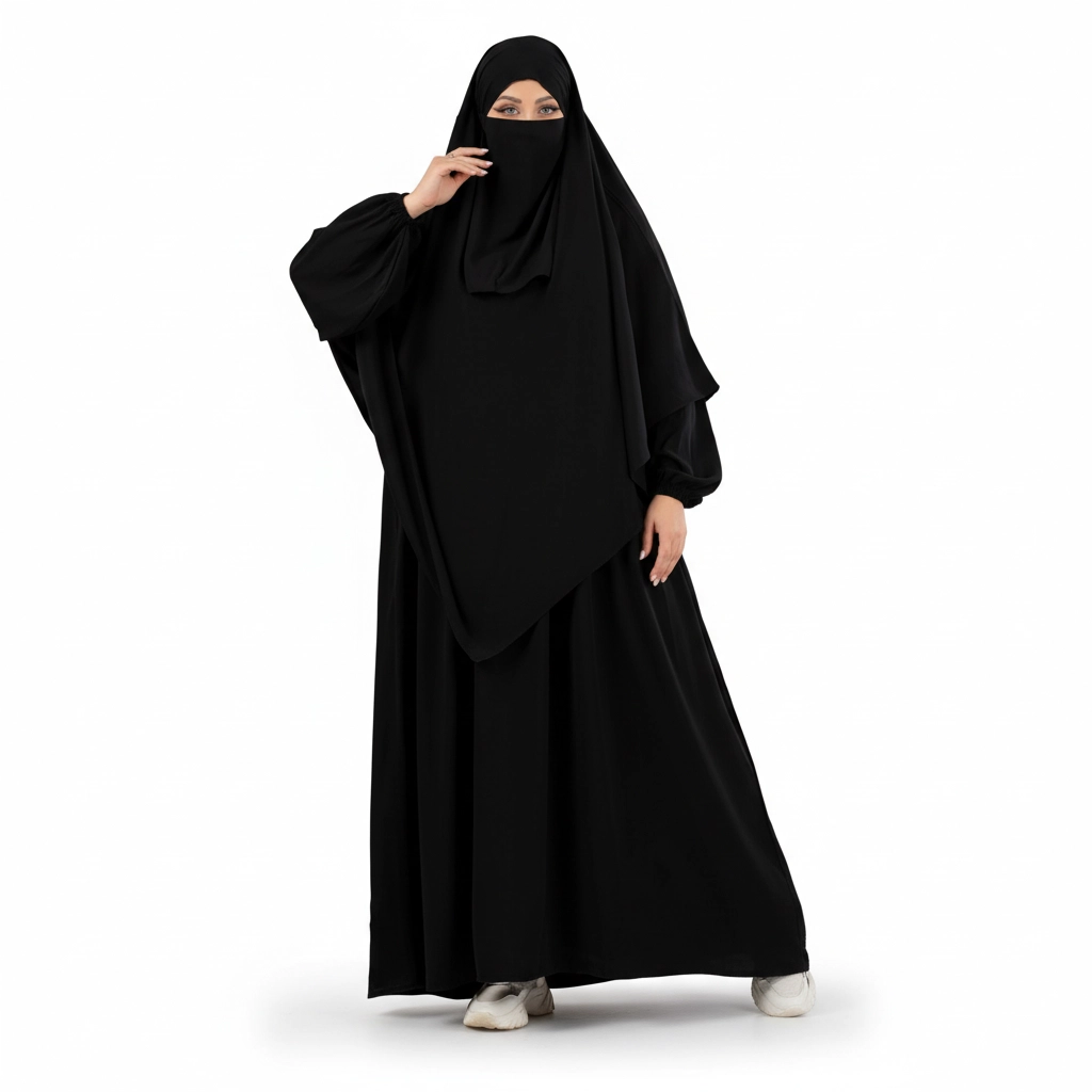 Introducing the AbayaEG Islamic Modest Set, a beautifully designed 3-piece modest outfit created for women who value elegance, comfort, and full modest coverage. This set includes a flowing abaya, a triangular khimaar, and a matching niqab, forming a complete Islamic outfit that reflects simplicity, modesty, and refined style. The loose, graceful silhouette allows the fabric to fall naturally, creating a soft and elegant look suitable for everyday modest wear. Designed with practicality and elegance in mind, the outfit offers maximum coverage while maintaining comfort and freedom of movement, making it an ideal choice for women who prefer classic modest fashion. For boutique owners and resellers, this model is highly attractive due to its complete set design, strong demand for modest Islamic clothing, and easy sizing (Free Size) which simplifies inventory management and appeals to a wider customer base.