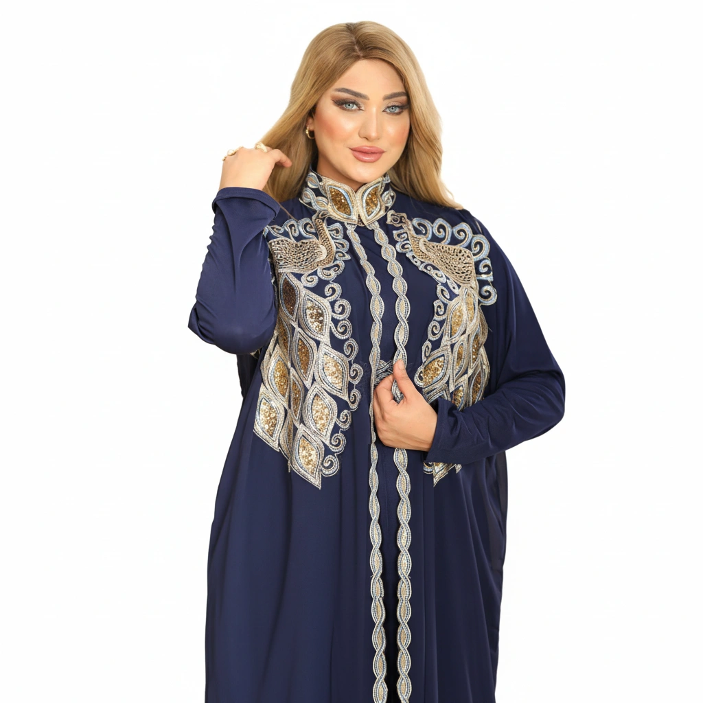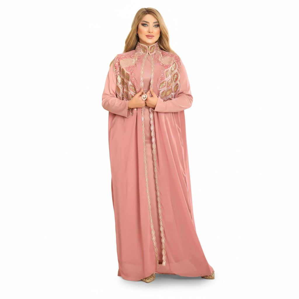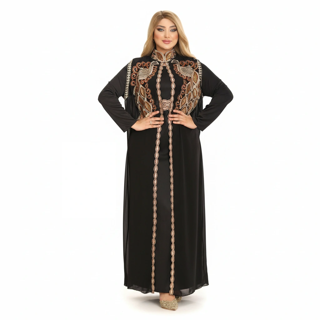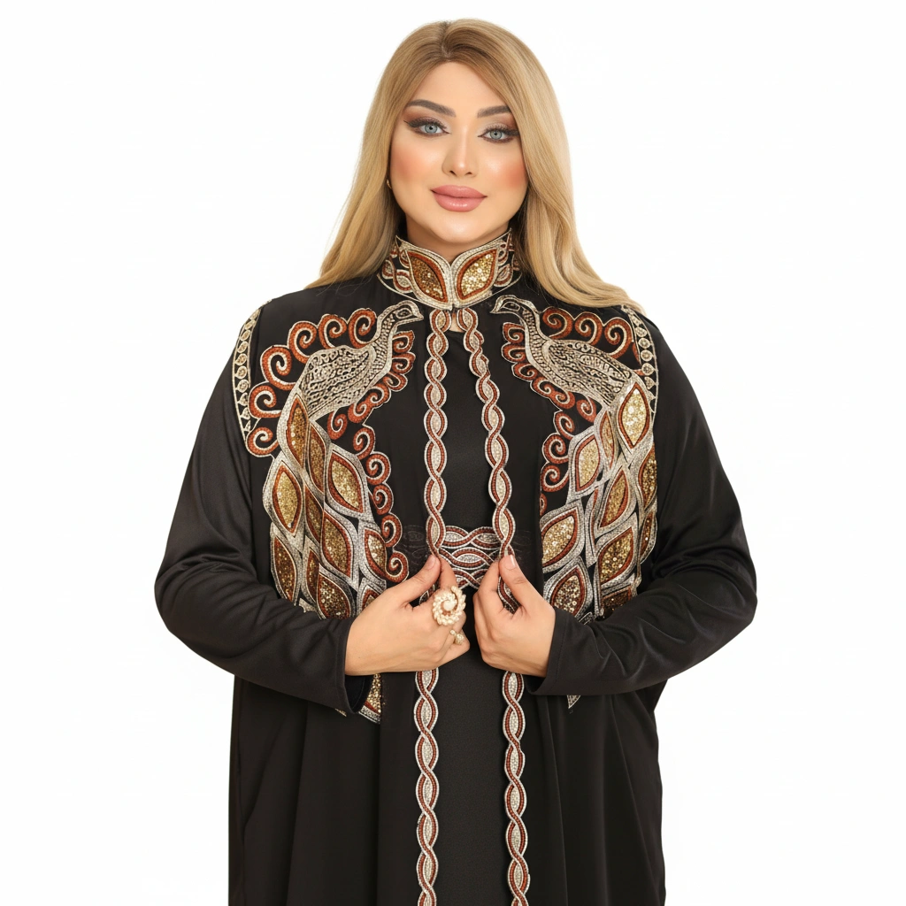 An elegant luxury abaya designed with refined craftsmanship and sophisticated embroidery details.