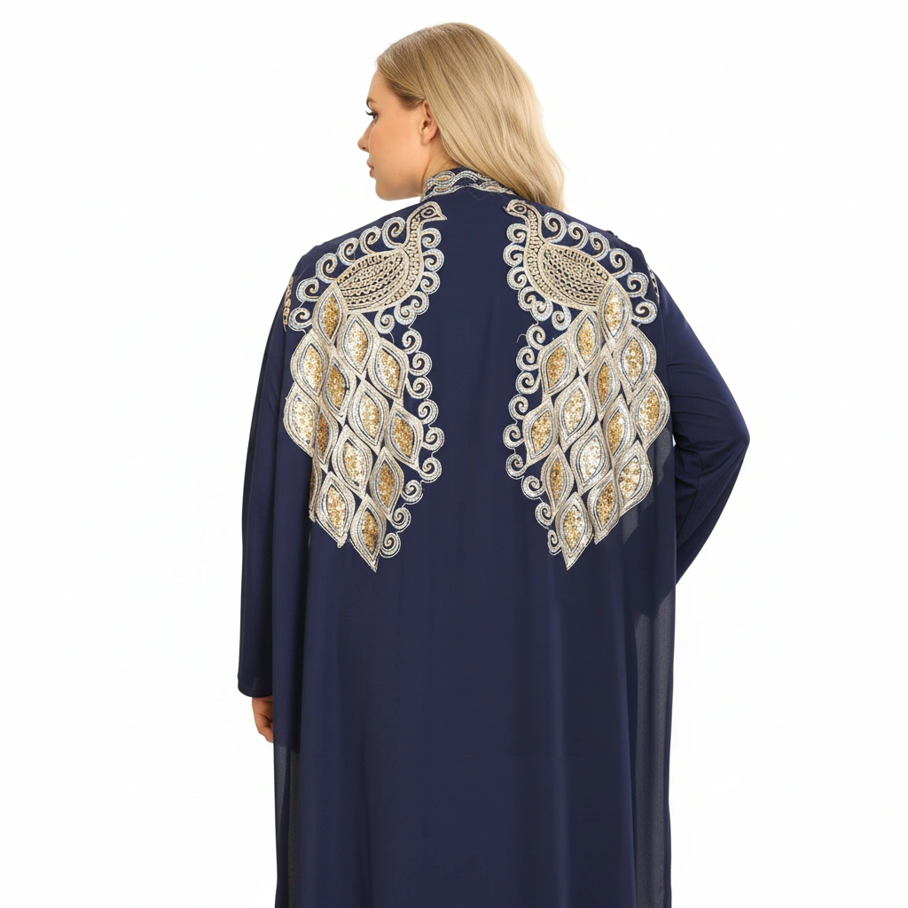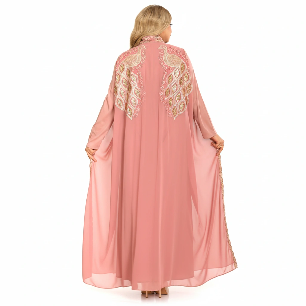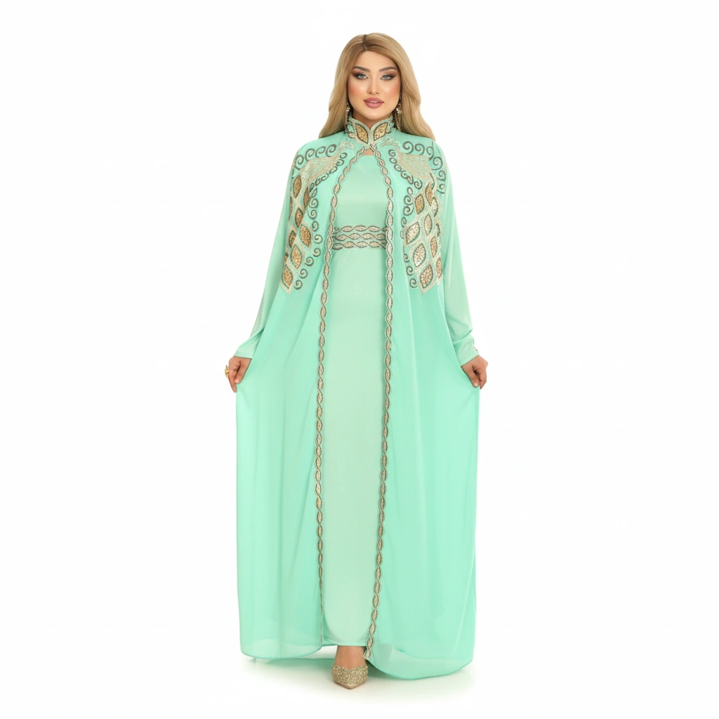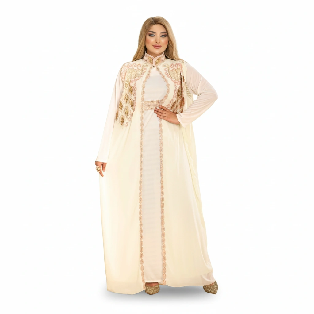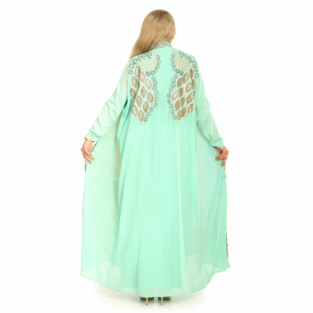 An elegant luxury abaya designed with refined craftsmanship and sophisticated embroidery details.