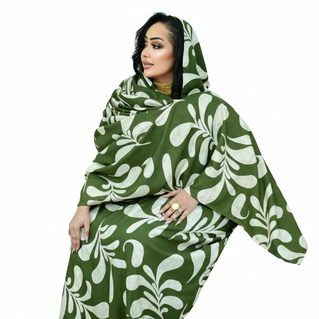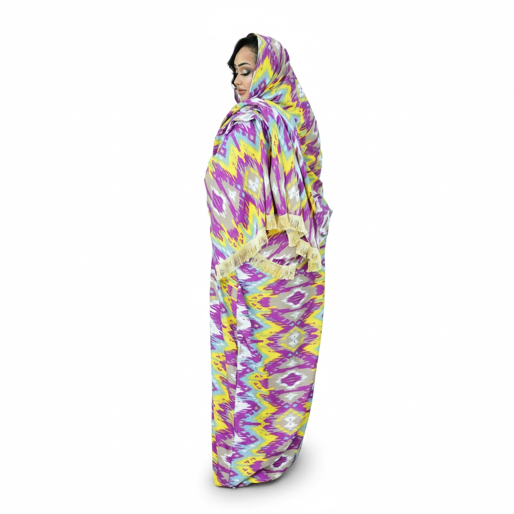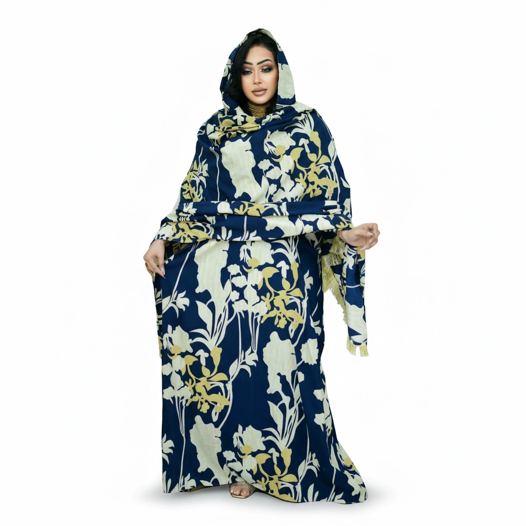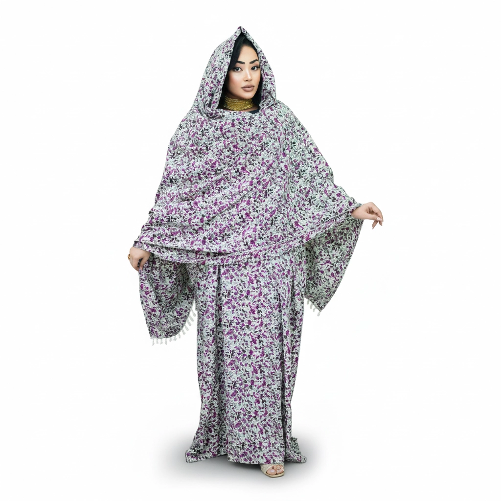 A striking African Toub luxury set featuring a long flowing dress and matching large shawl with bold African-inspired prints. Available in 13 vibrant colors.