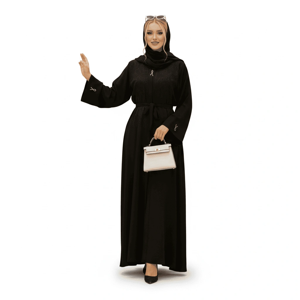 A refined black abaya designed for women who appreciate minimal elegance with a modern silhouette. Made from premium silk fabric, this abaya features a soft texture, lightweight feel, and graceful flow that enhances movement.