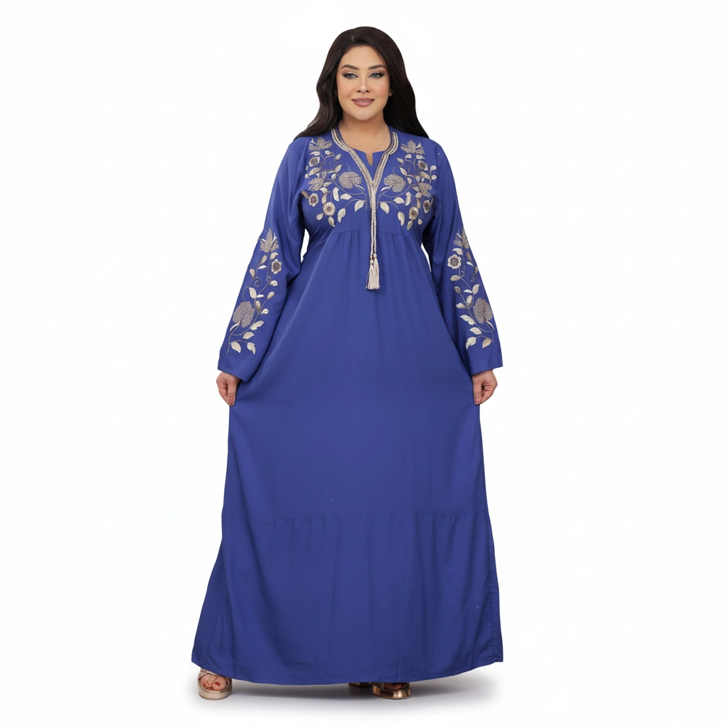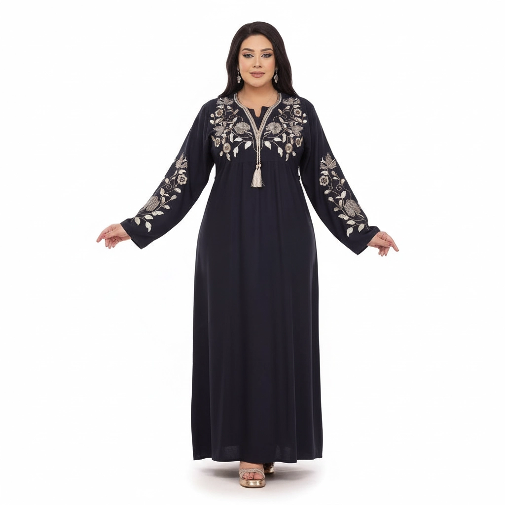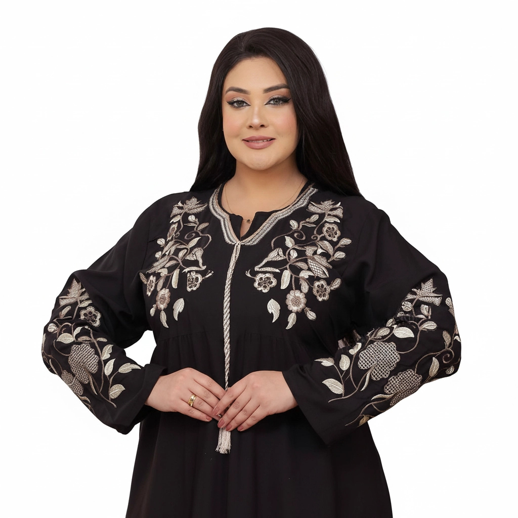 Elegant Floral Embroidered Home Reception Abaya – Premium Cotton Marasi Fabric