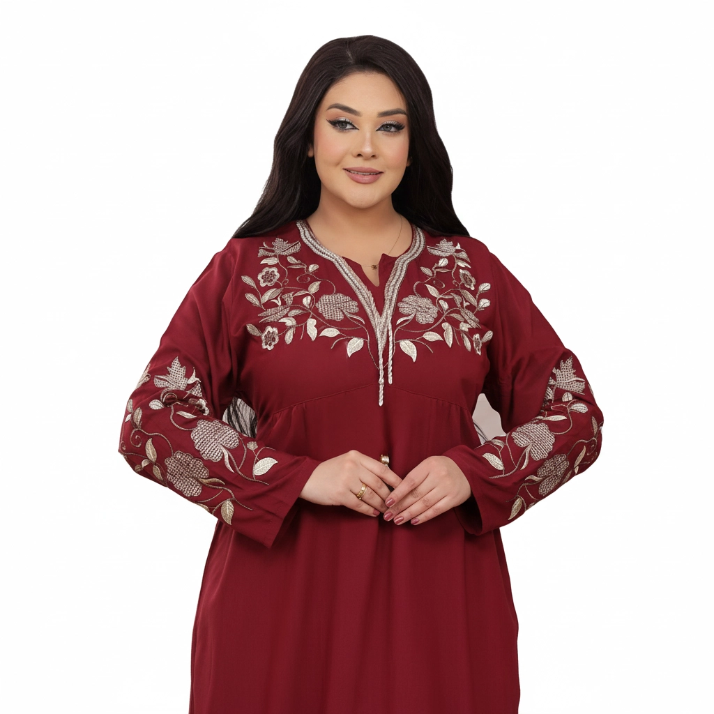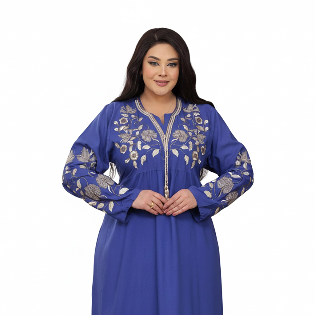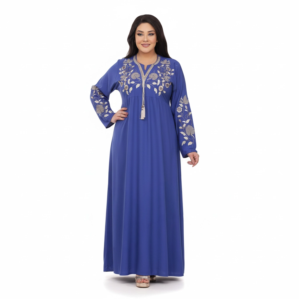 Elegant Floral Embroidered Home Reception Abaya – Premium Cotton Marasi Fabric