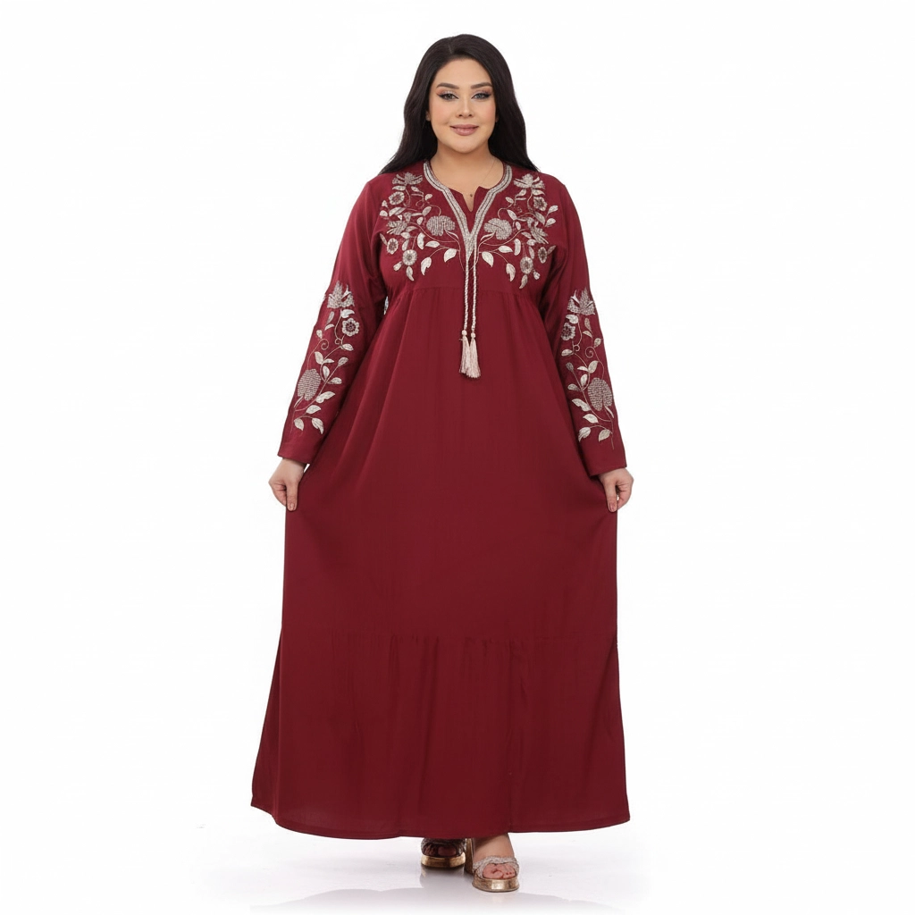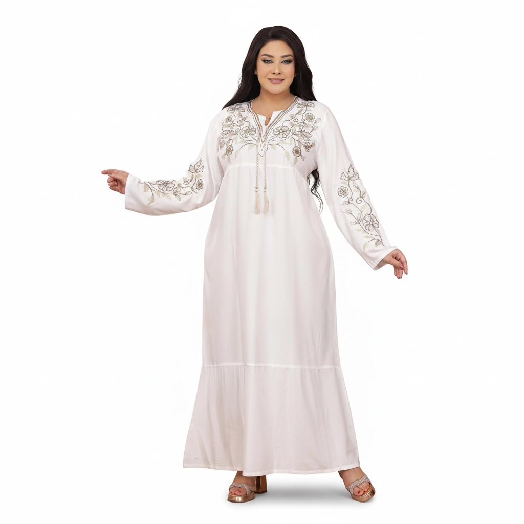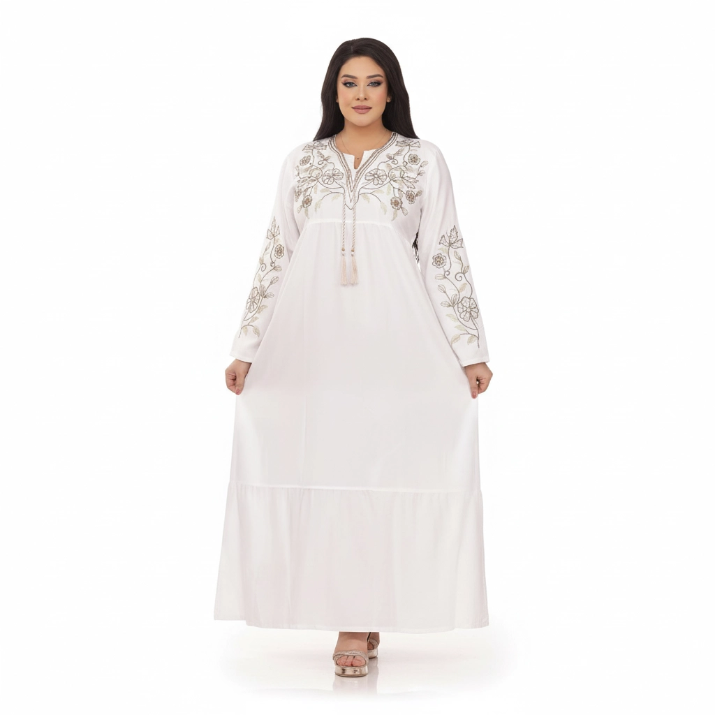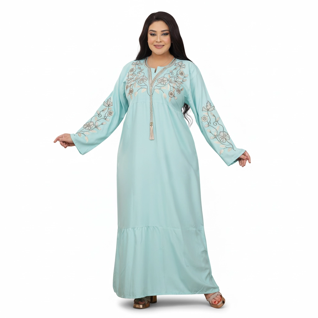 reception abaya, floral embroidered abaya, cotton marasi abaya, home wear abaya, elegant modest fashion, family gathering abaya, boutique abaya collection, ramadan home abaya, tasseled abaya, AbayaEG