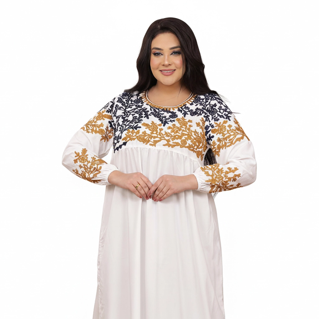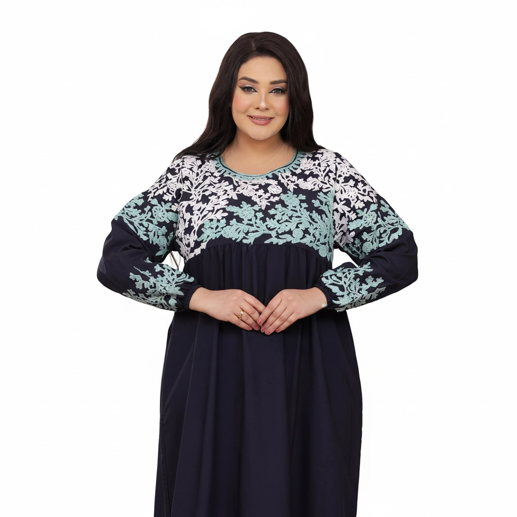 reception abaya, floral embroidered abaya, home abaya, cotton marasi abaya, elegant home wear, hosting guests abaya, modest fashion women, boutique abaya collection, ramadan abaya, AbayaEG