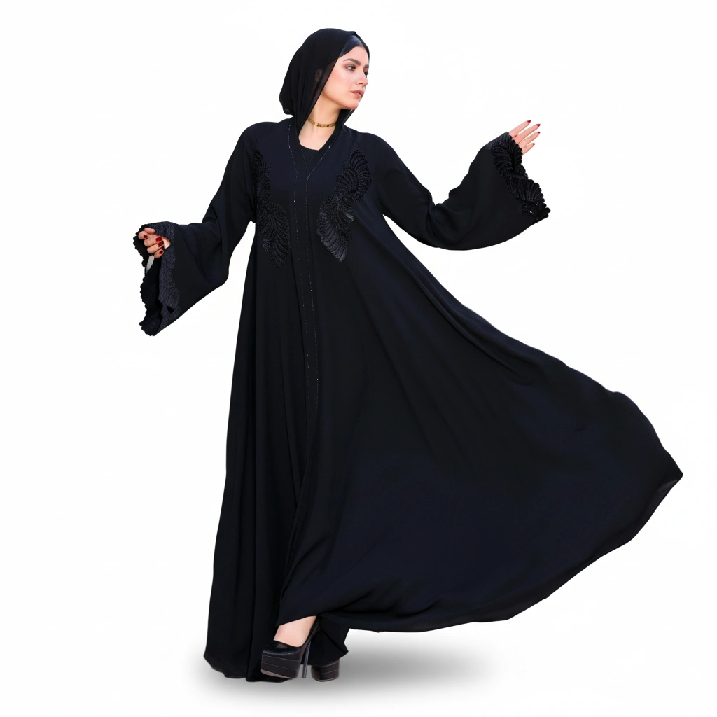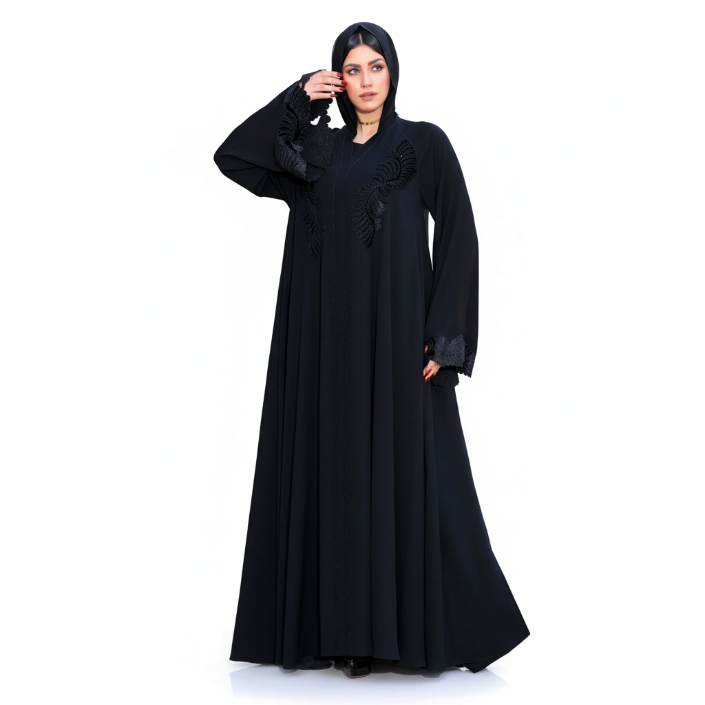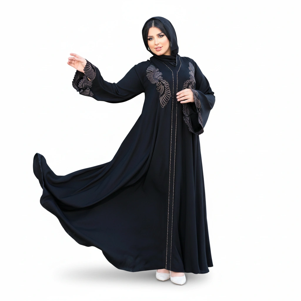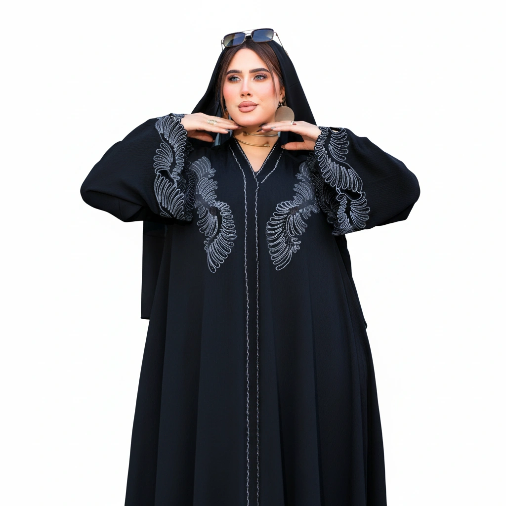 • Elegant Gulf-style long abaya silhouette