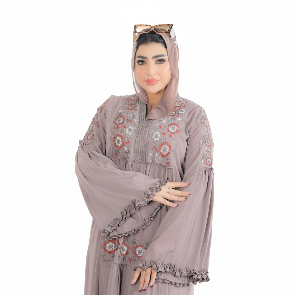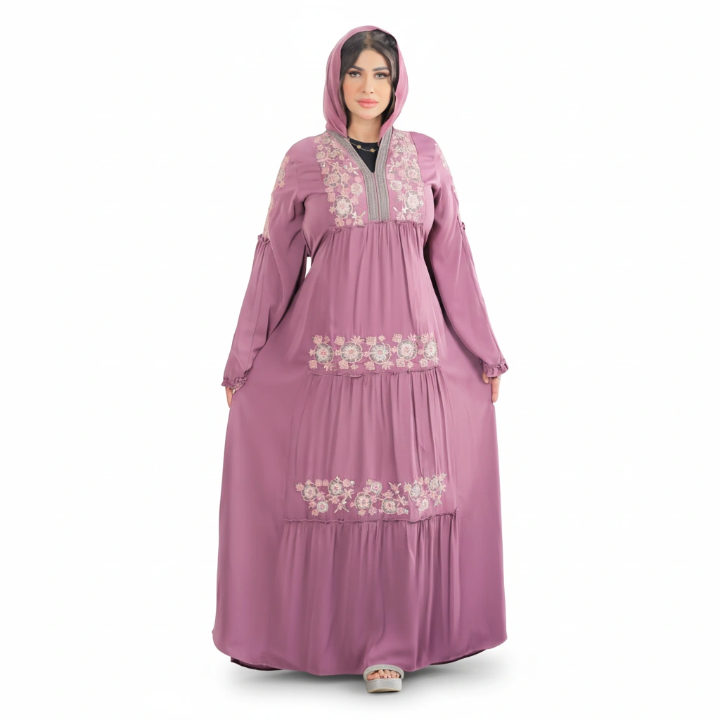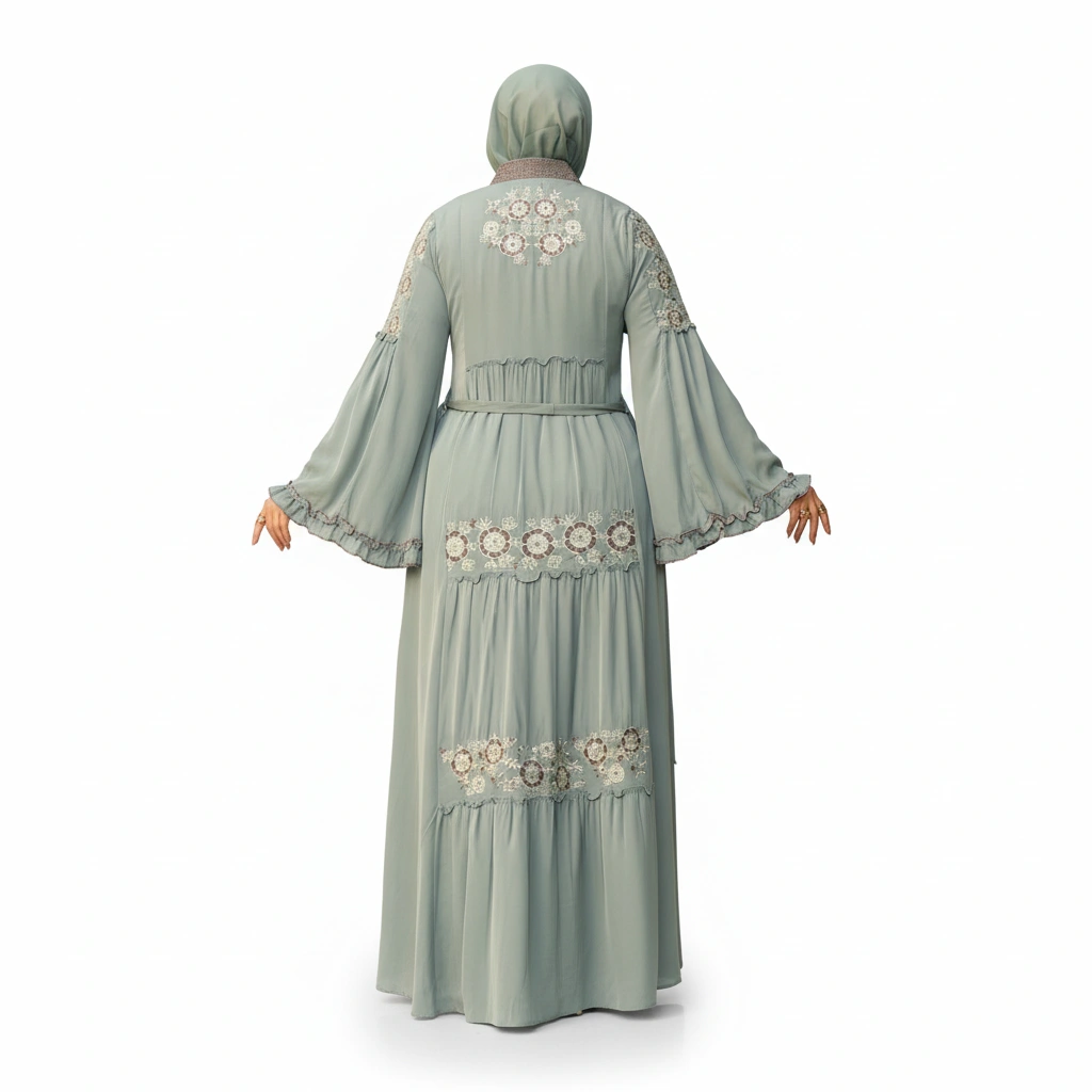 A refined premium silk abaya designed for elegant modest fashion, featuring luxurious details and a graceful silhouette.