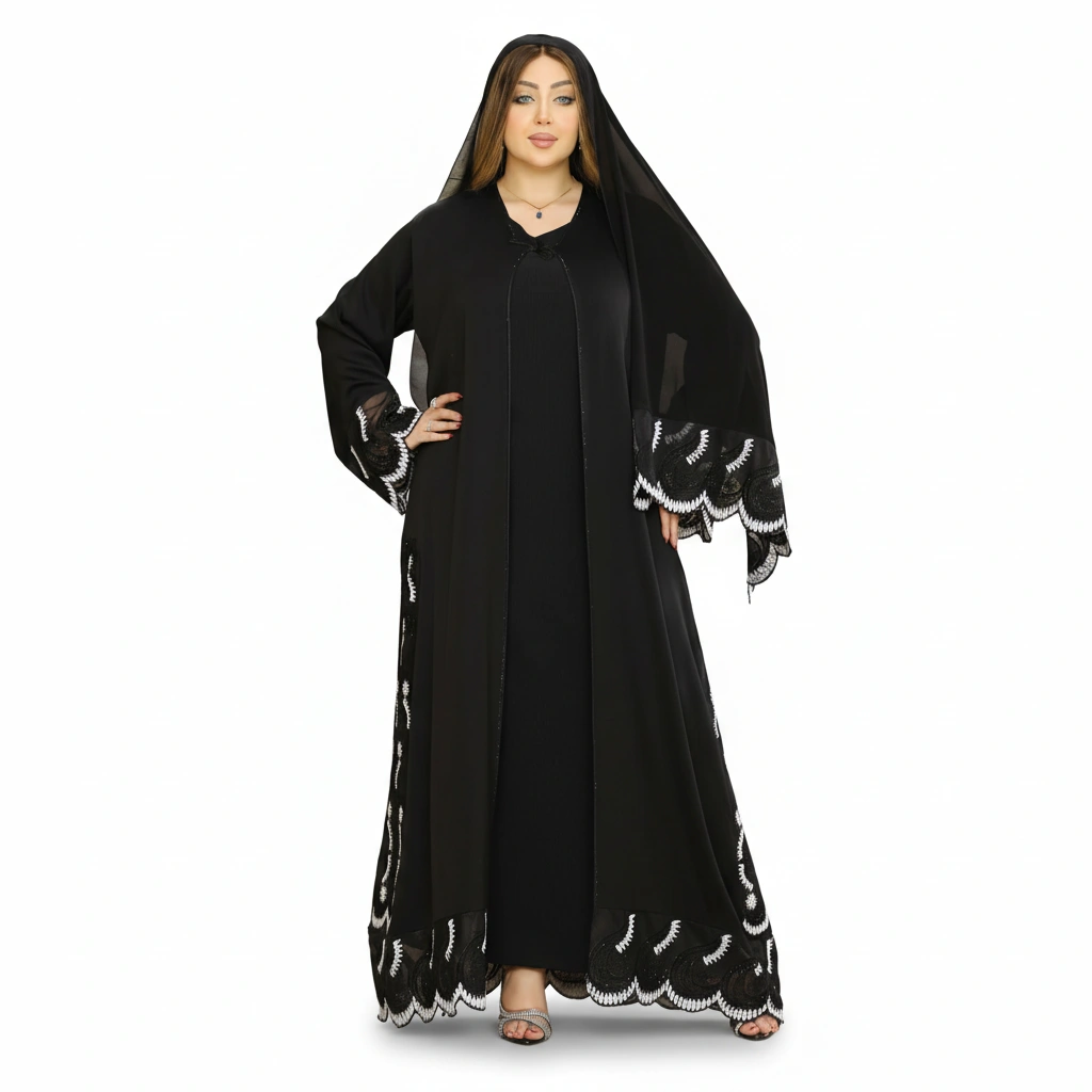 • Two-piece Gulf design (inner abaya + cape overlay)