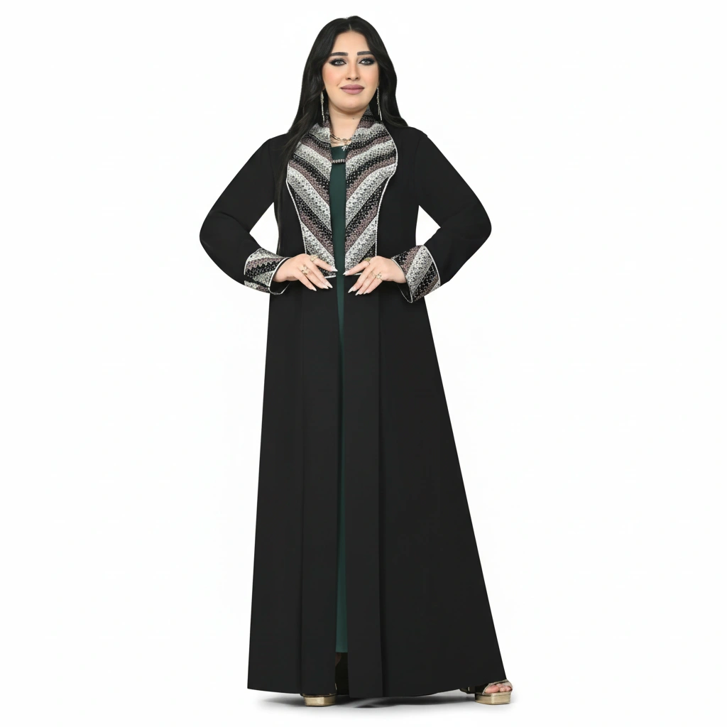 This model is ideal for women seeking a refined everyday luxury abaya, while also offering strong appeal for resellers and boutiques thanks to its striking design and high visual value for catalogs, online stores, and social media campaigns.