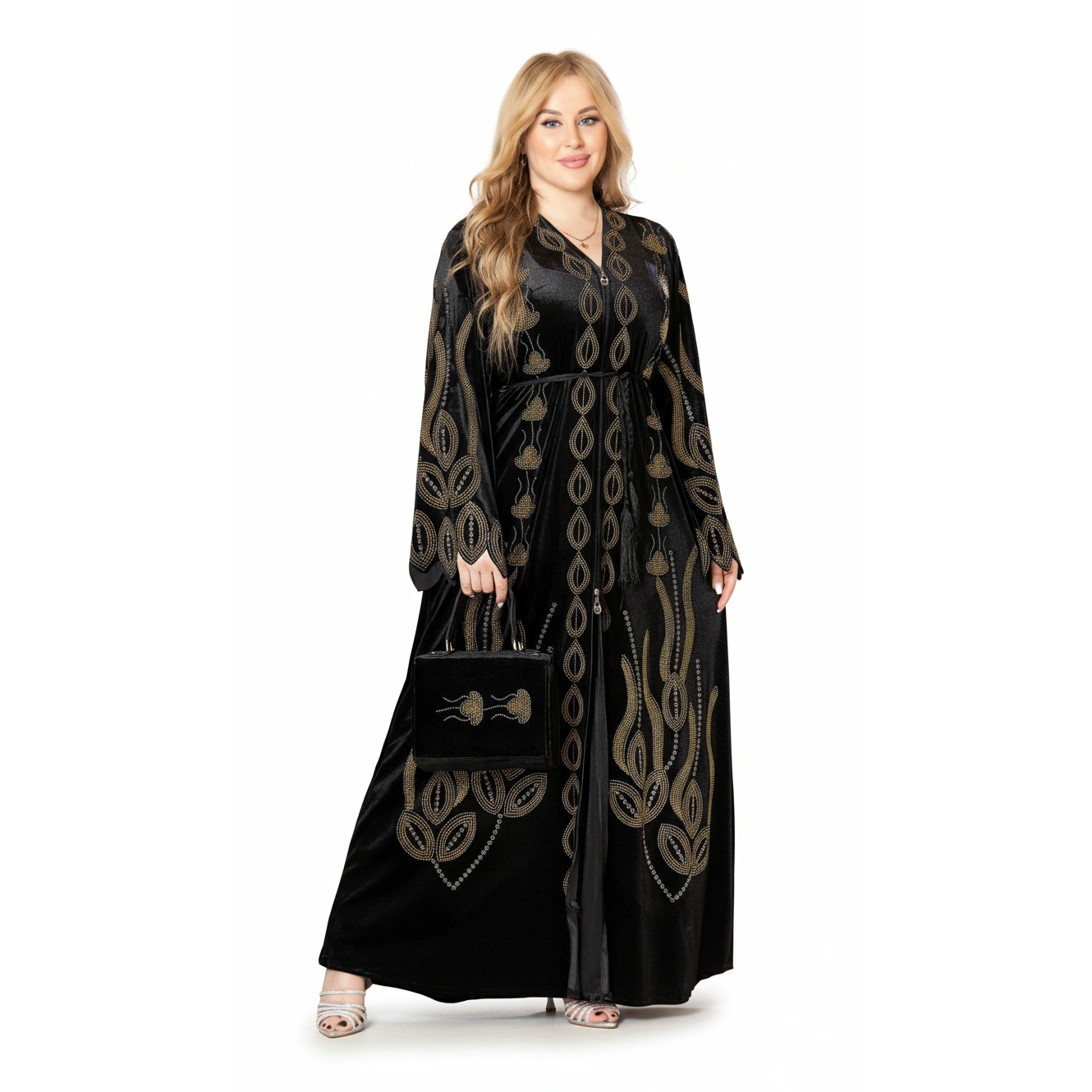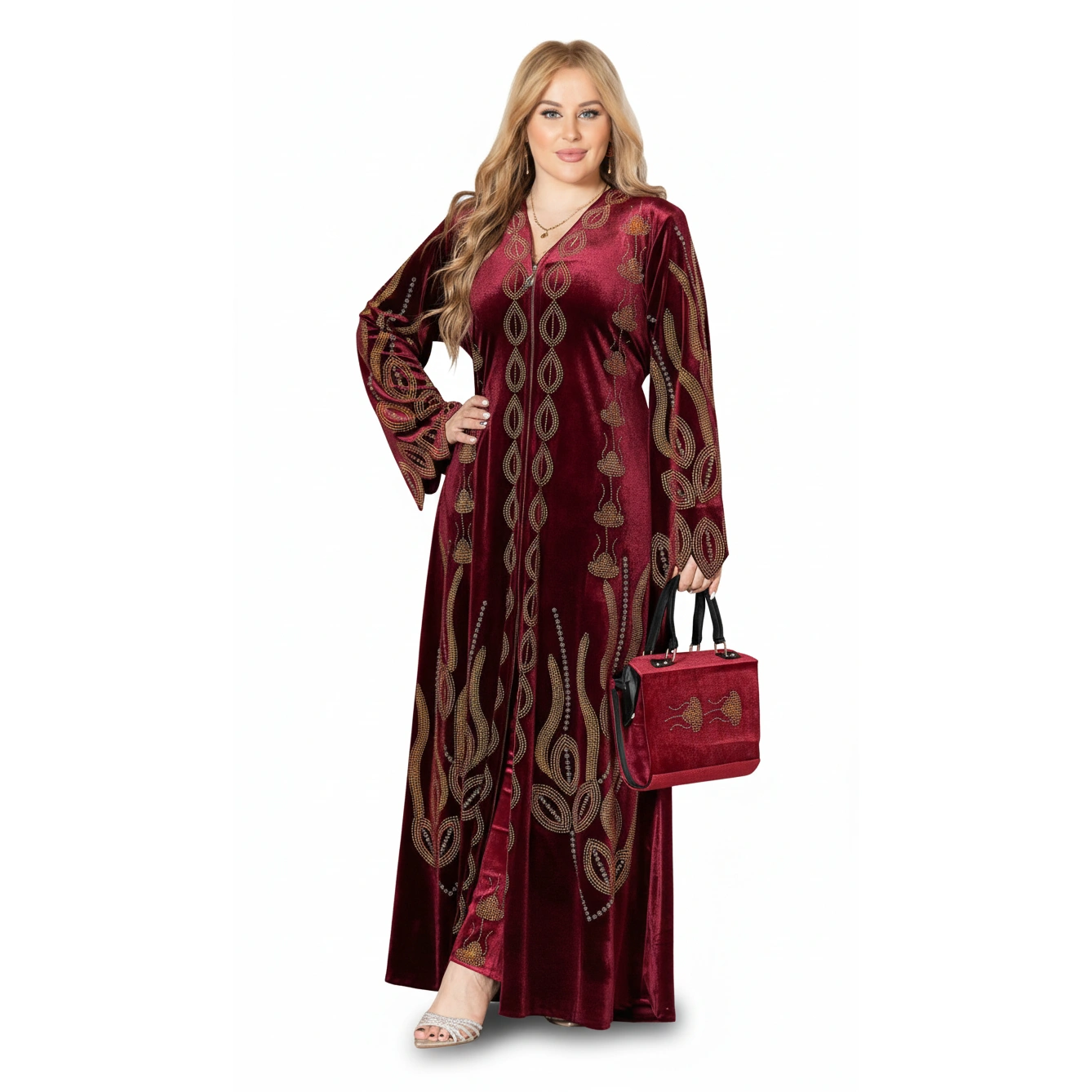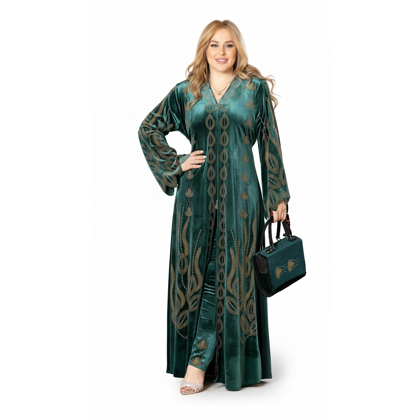 A luxurious velvet embroidered abaya available in Navy, Emerald, Burgundy, and Black. Elegant modest fashion for every occasion.